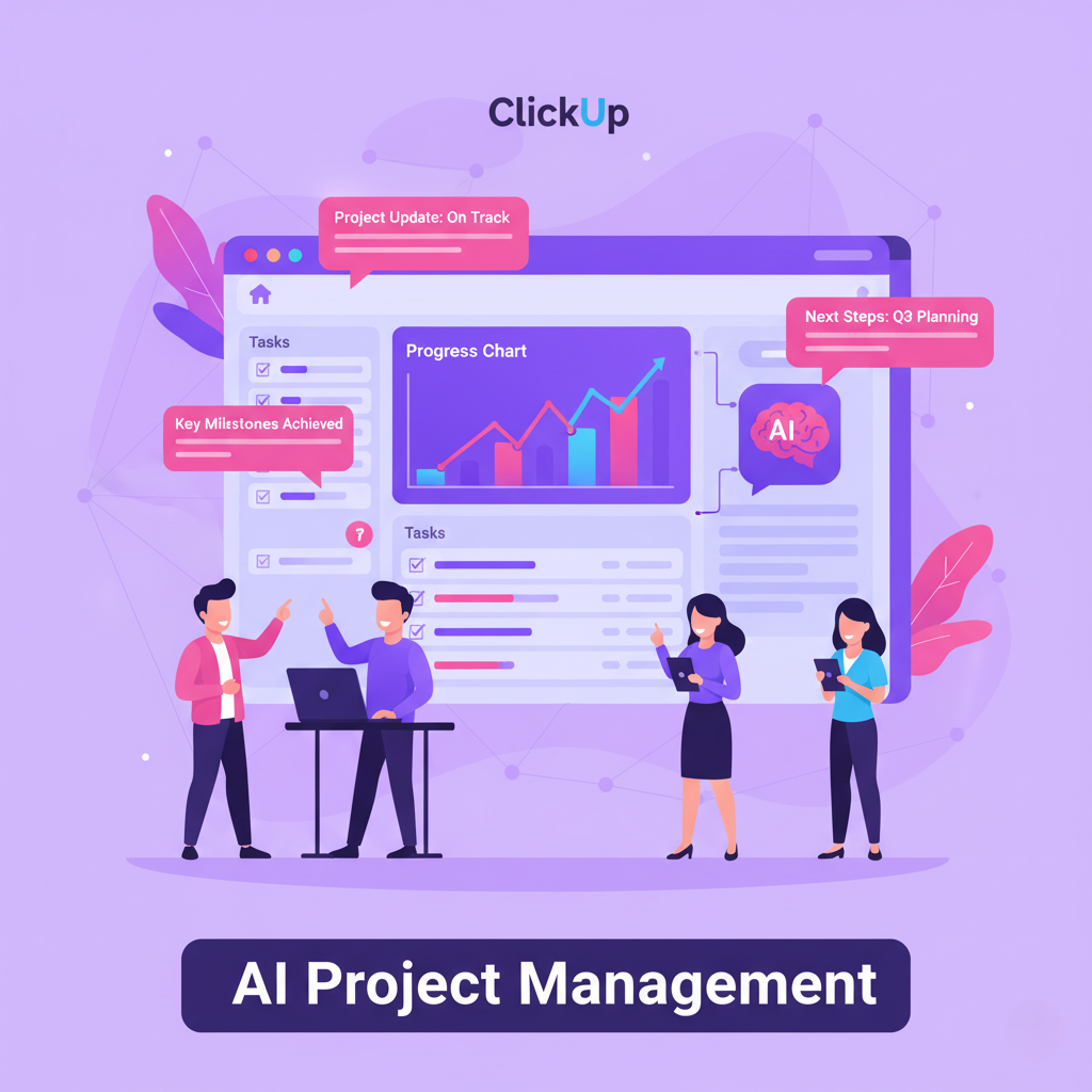 Core Role & AI Function: ClickUp AI serves as an intelligent project management assistant that automates task assignment, status tracking, and written updates. Its AI leverages natural language processing to understand project context and automatically prioritize workflows.