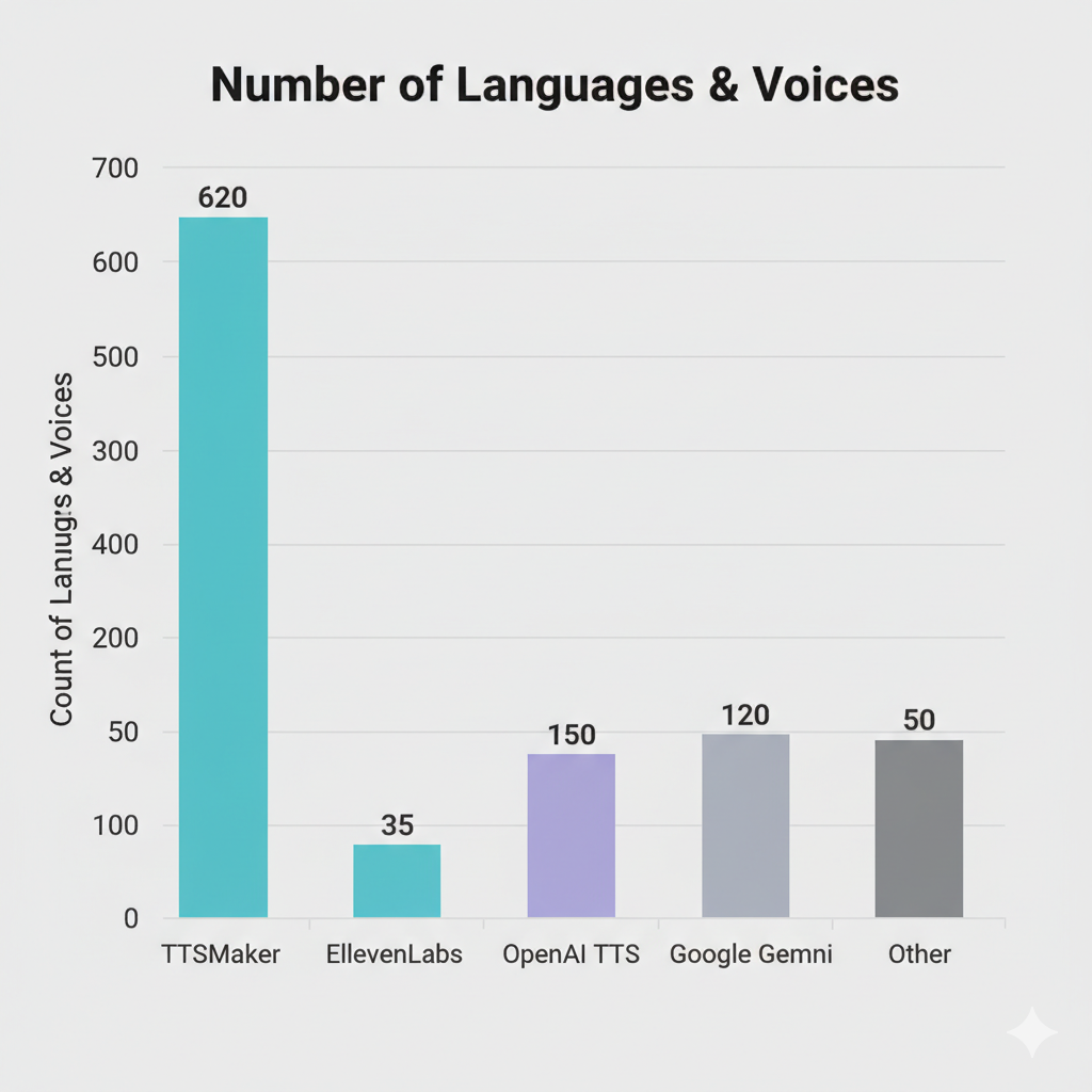 | TTSMaker | 100+ | 600+ voices, multilingual |